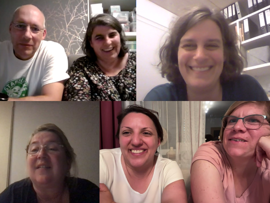 👩🏻‍💻 Um 20:30 Uhr startete unsere Videokonferenz mit 5 Frauen und einem Mann. Auch dieses Mal sprang hin und wieder das ein oder andere Kind durchs Bild.